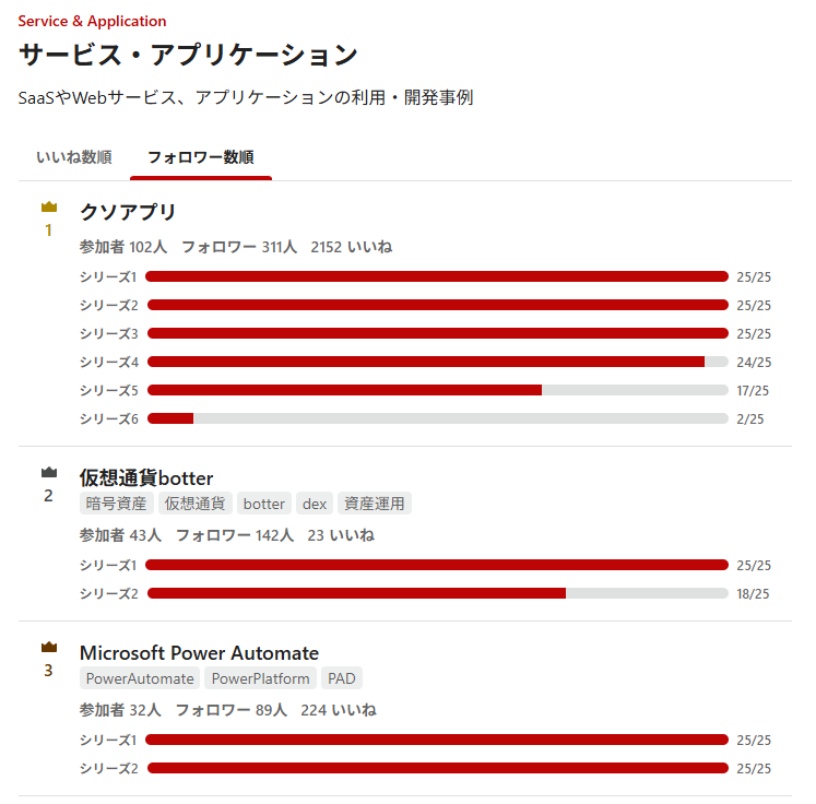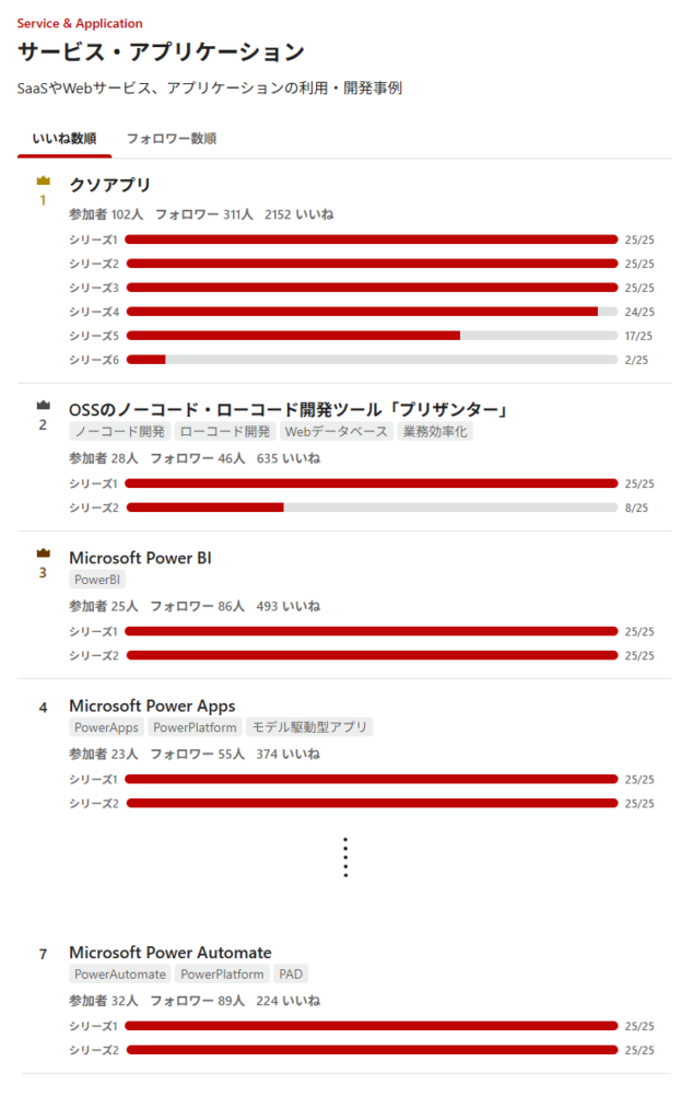 「サービス・アプリケーション」のカテゴリーの「フォロワー数」では、残念ながらNo.7でした。(2026/03/08 15:00時点)